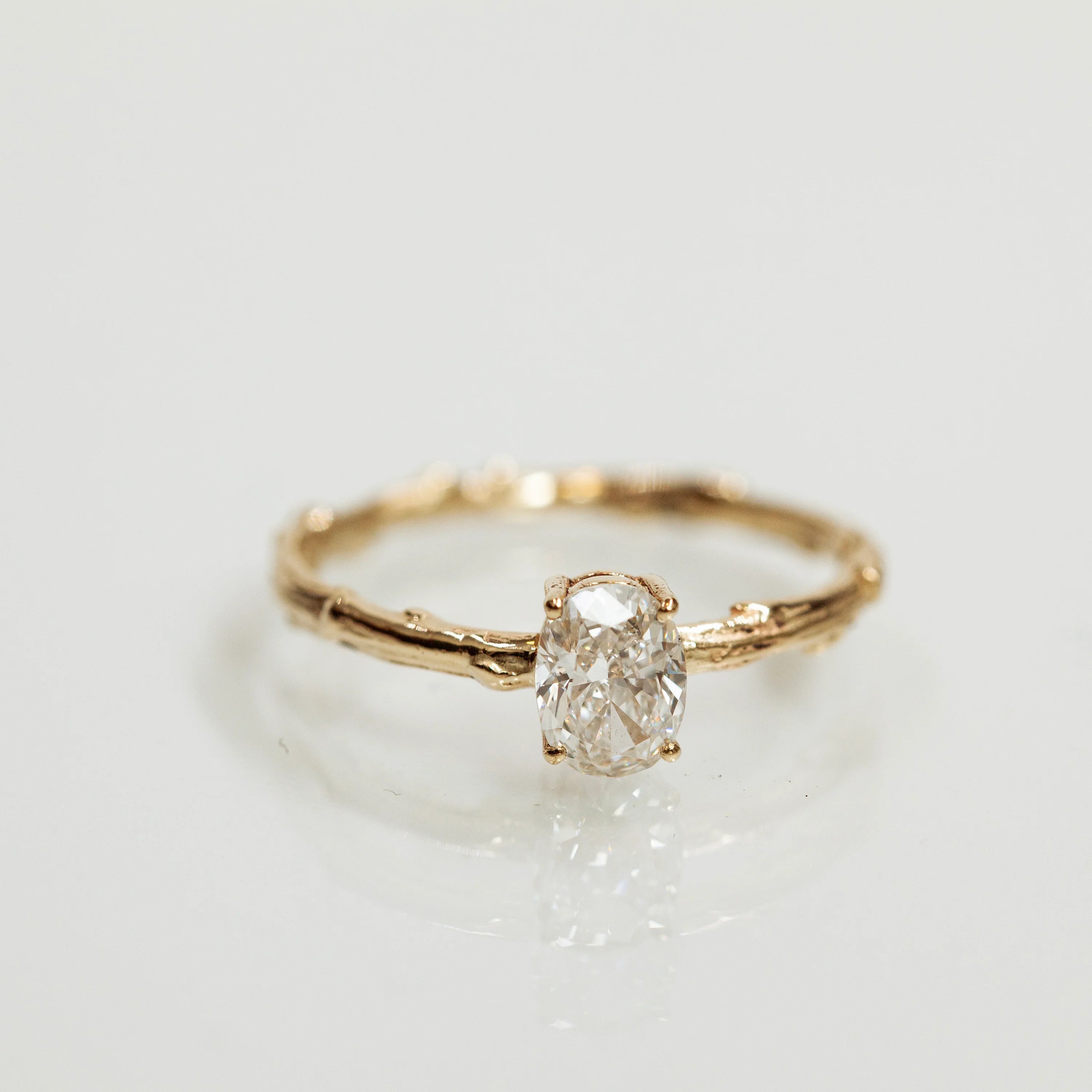 Each ring is meticulously handcrafted in our studio, featuring various unique designs that reflect the organic beauty found in nature. From delicate branch motifs to the raw allure of meteorites and custom gemstone settings, our engagement rings are as unique as the love stories they represent.