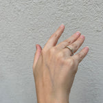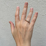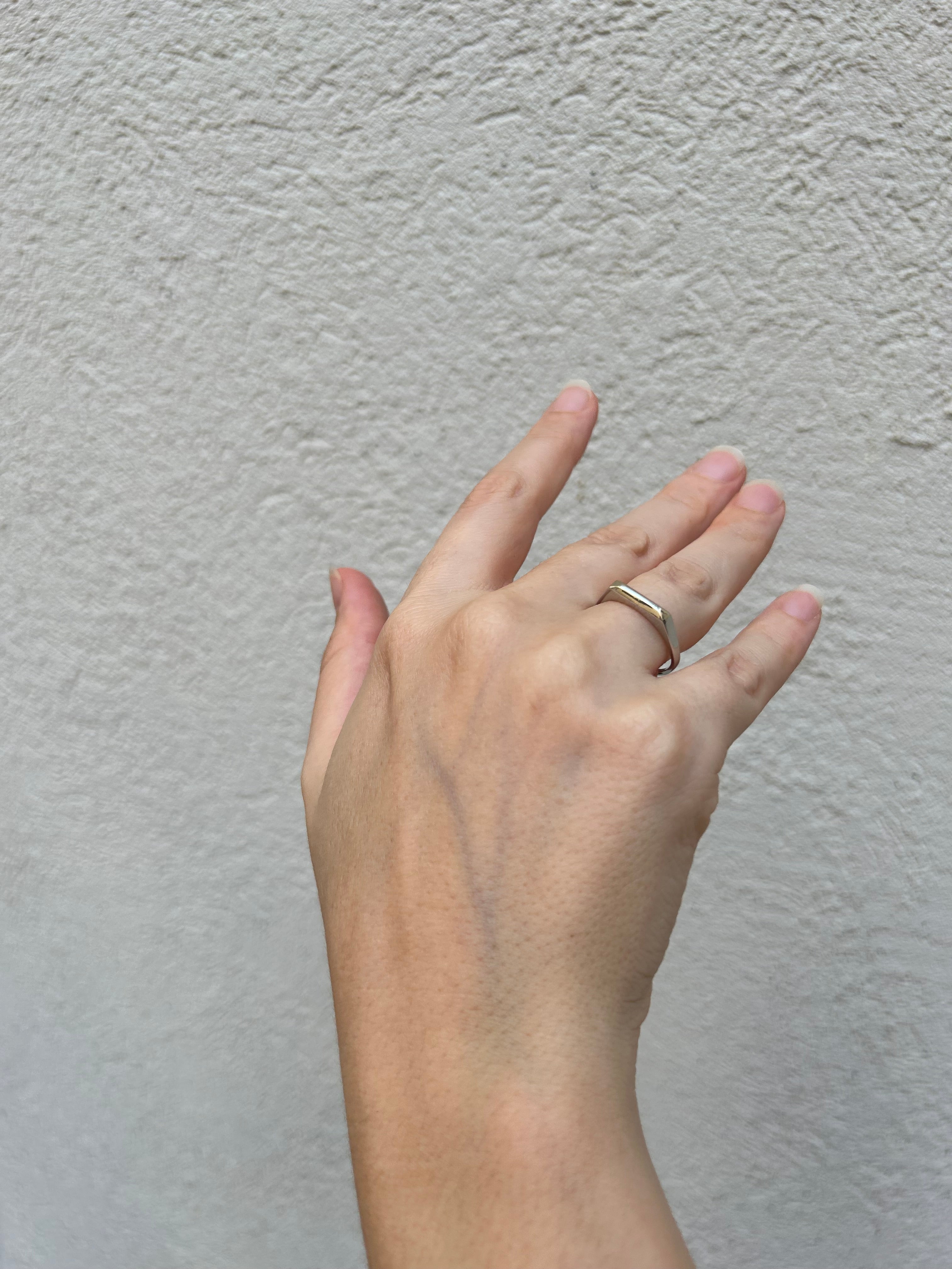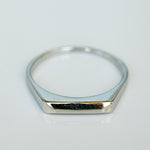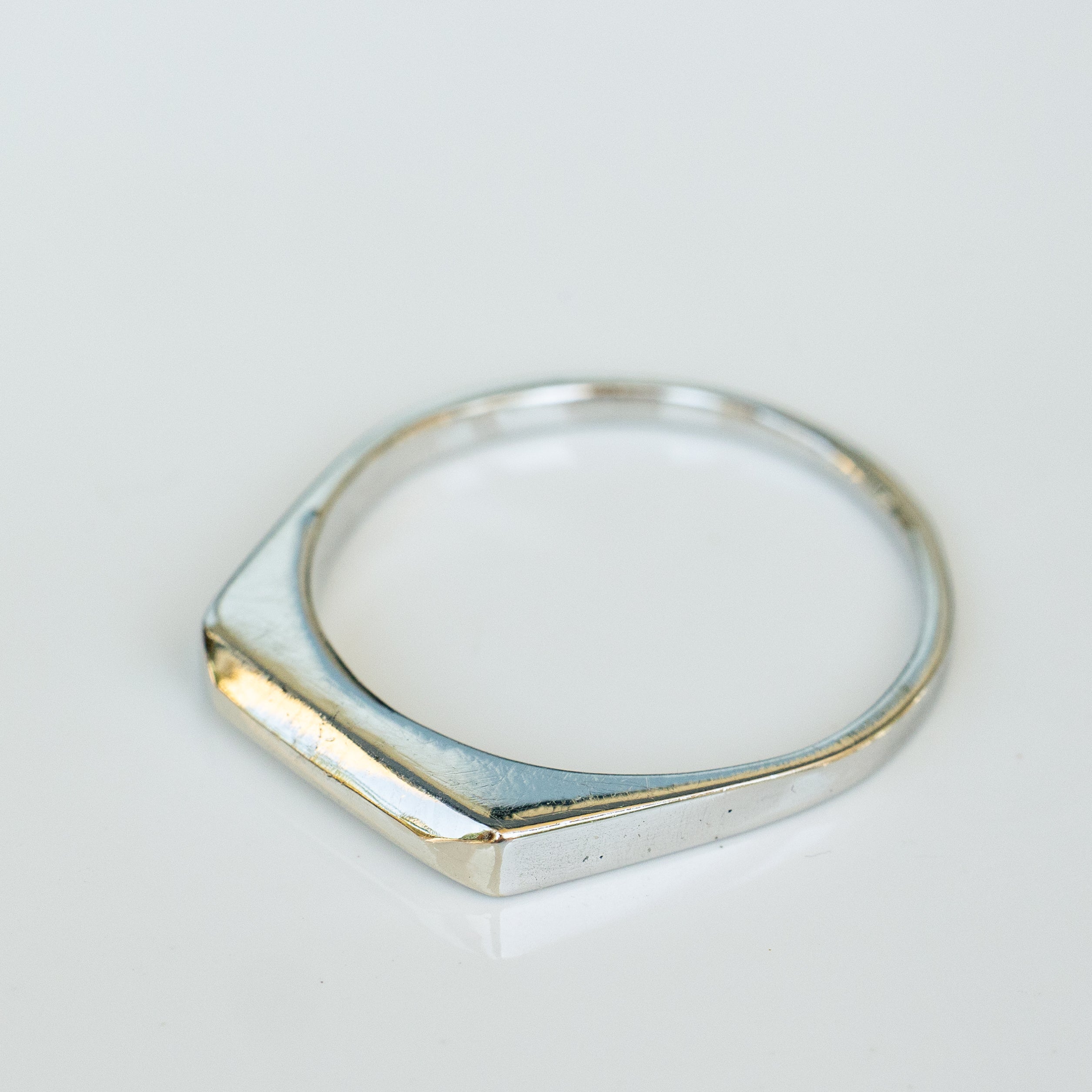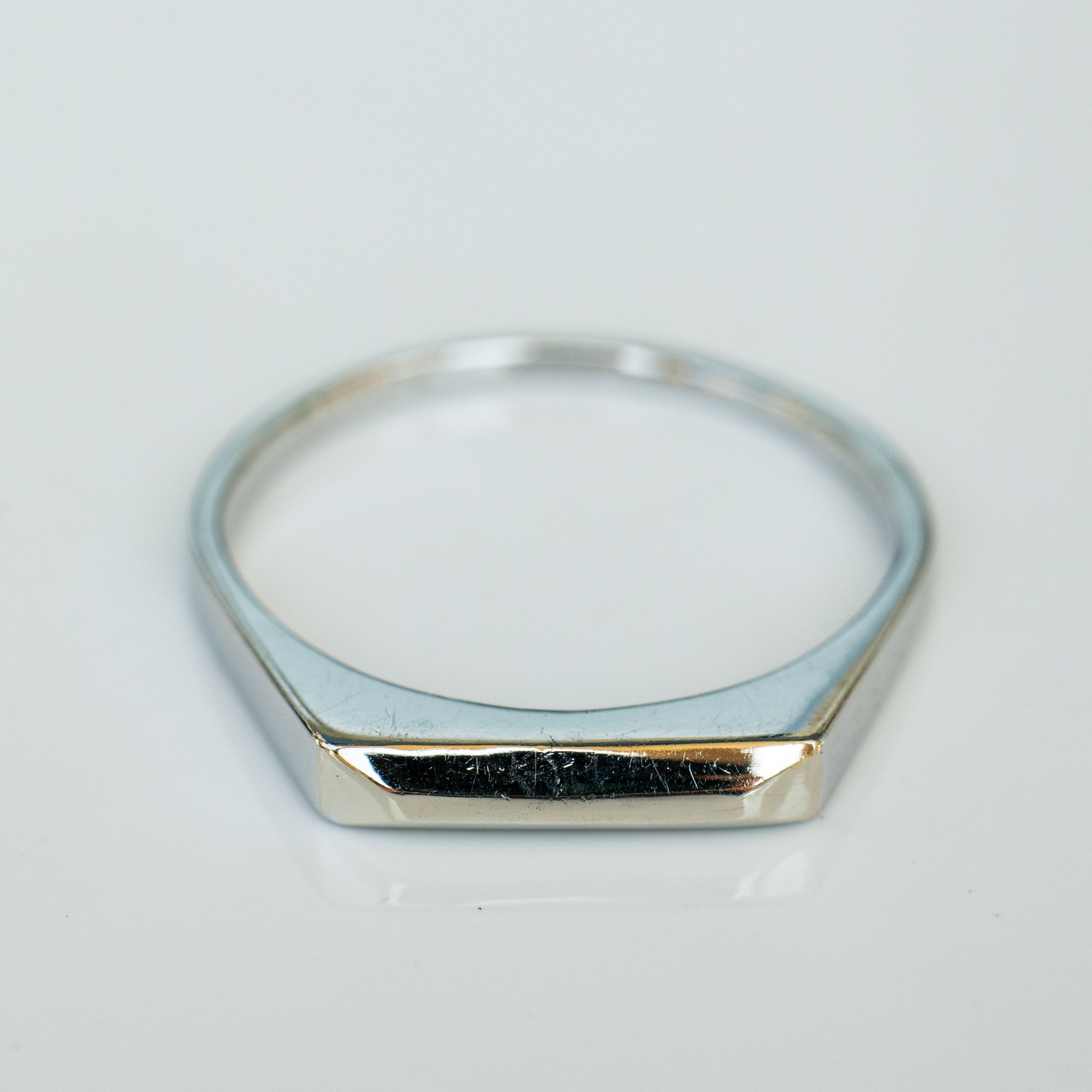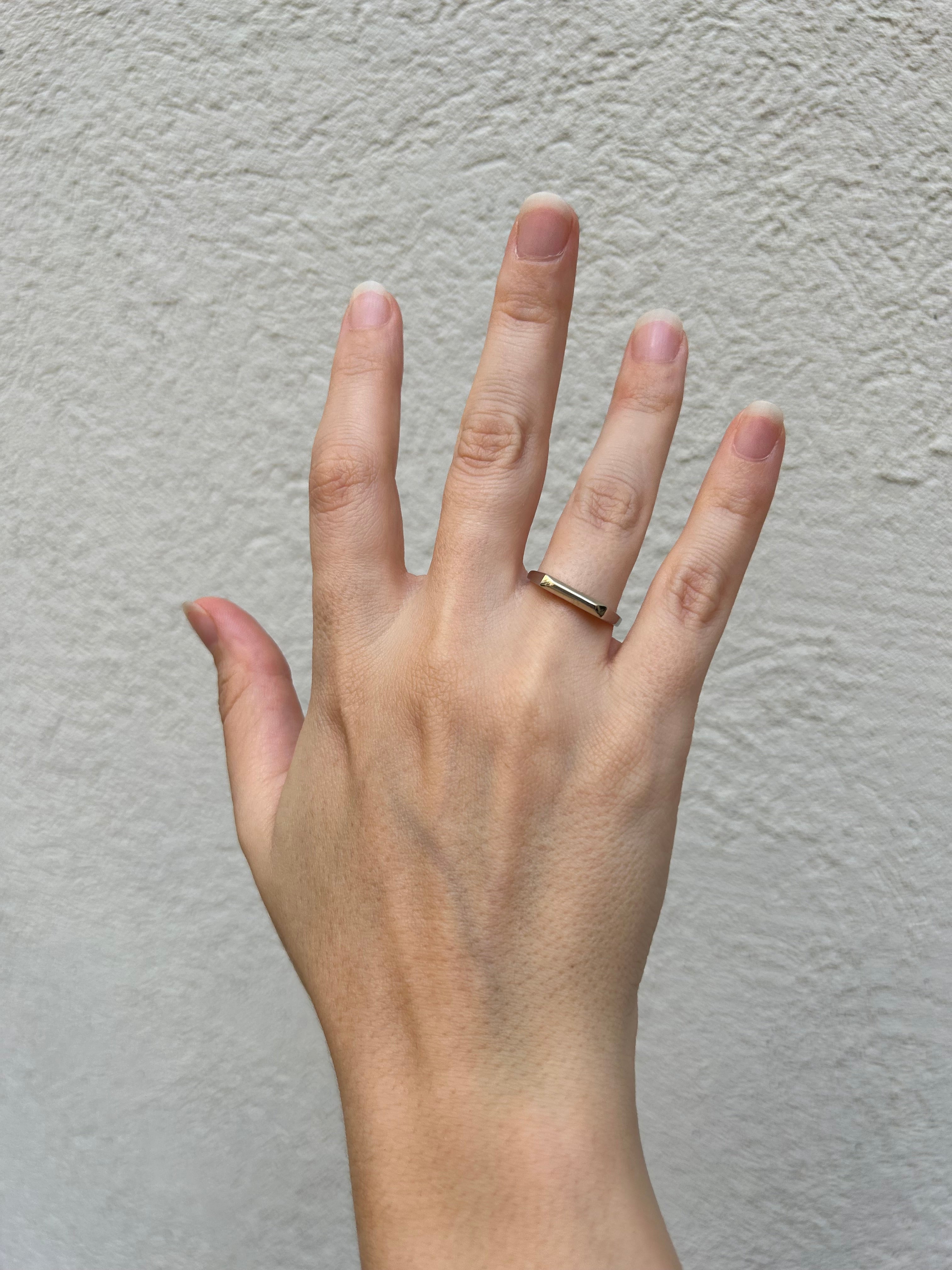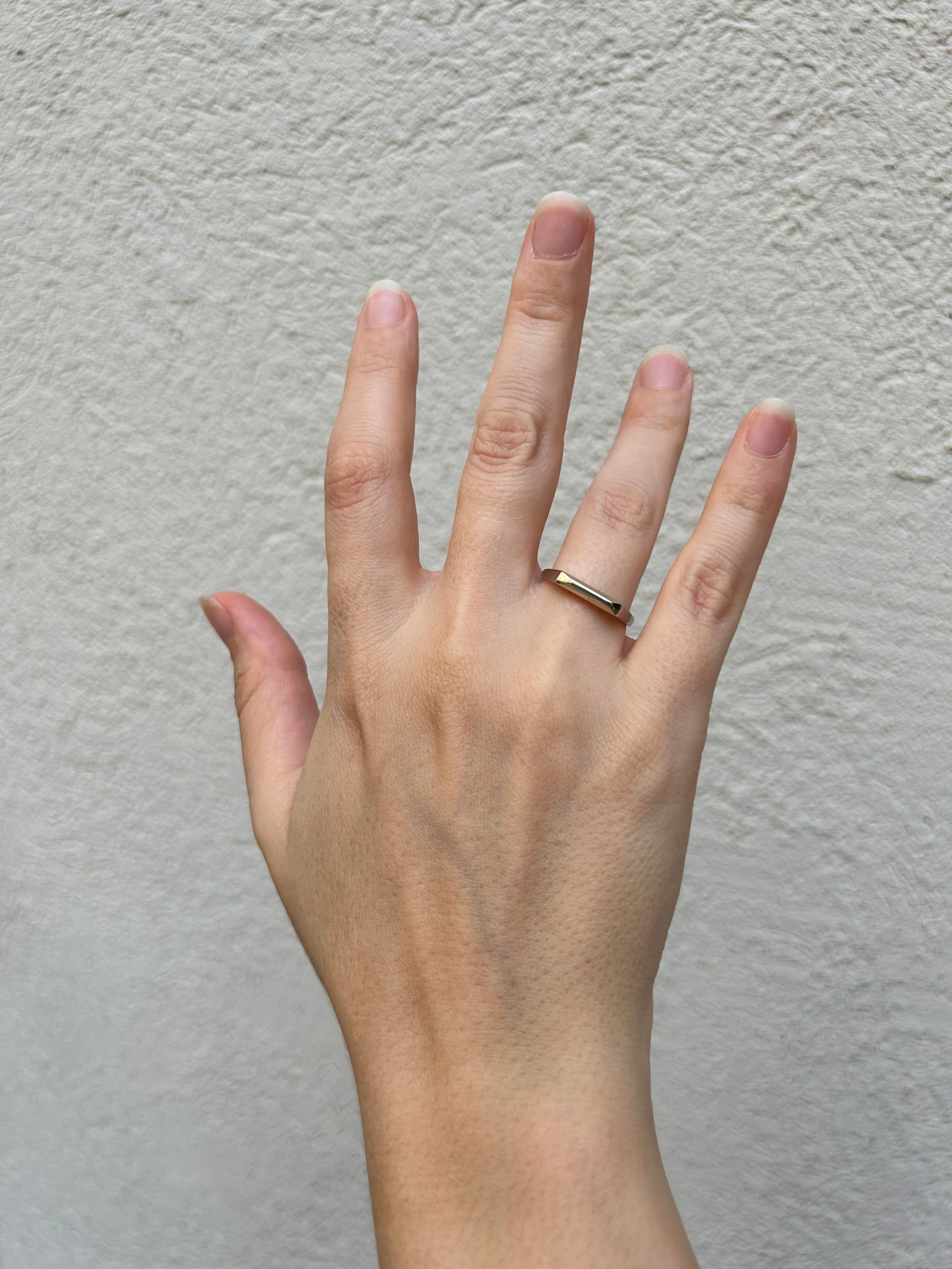 This is a 14K thin gold ring that features a faceted design on the top with a high polish, giving the gold a gem-like appearance on the upper portion of the ring. The ring is very thin, measuring 1 mm in width and expanding to 2.5 mm at the top. It pairs beautifully with other gold bands, making it an excellent choice for stacking.