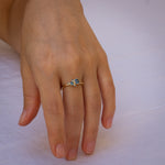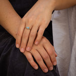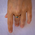 The contrast between the gold and the blue sapphires is stunning, making this ring a beautiful statement piece that is both subtle and eye-catching when worn.