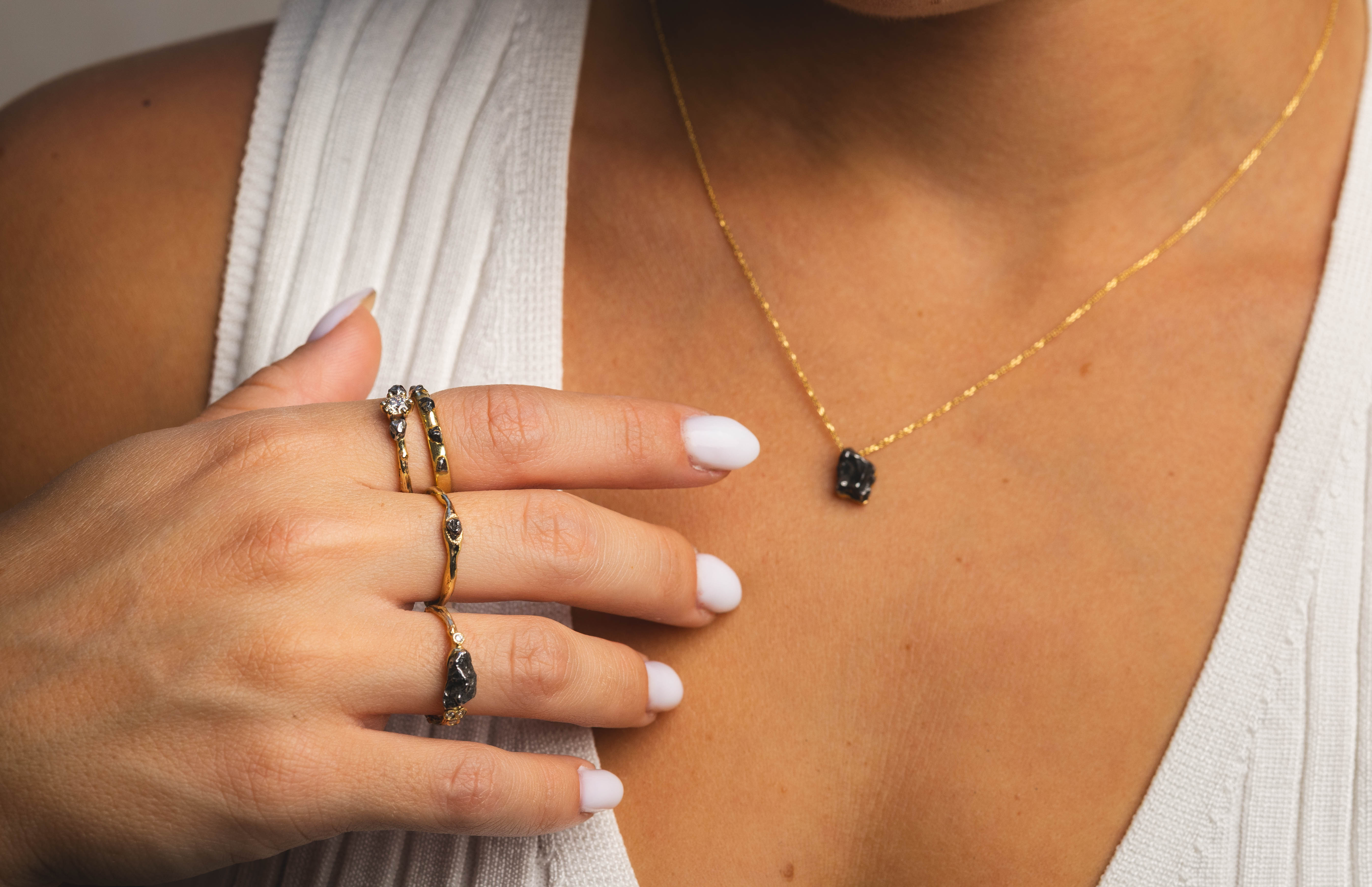 This exclusive collection celebrates the unique, natural shapes of these extraordinary meteorites. Every piece is handmade, showcasing various forms of the rare "Campo del Cielo" meteorite, with some pieces left in their purest form, without diamonds.
