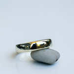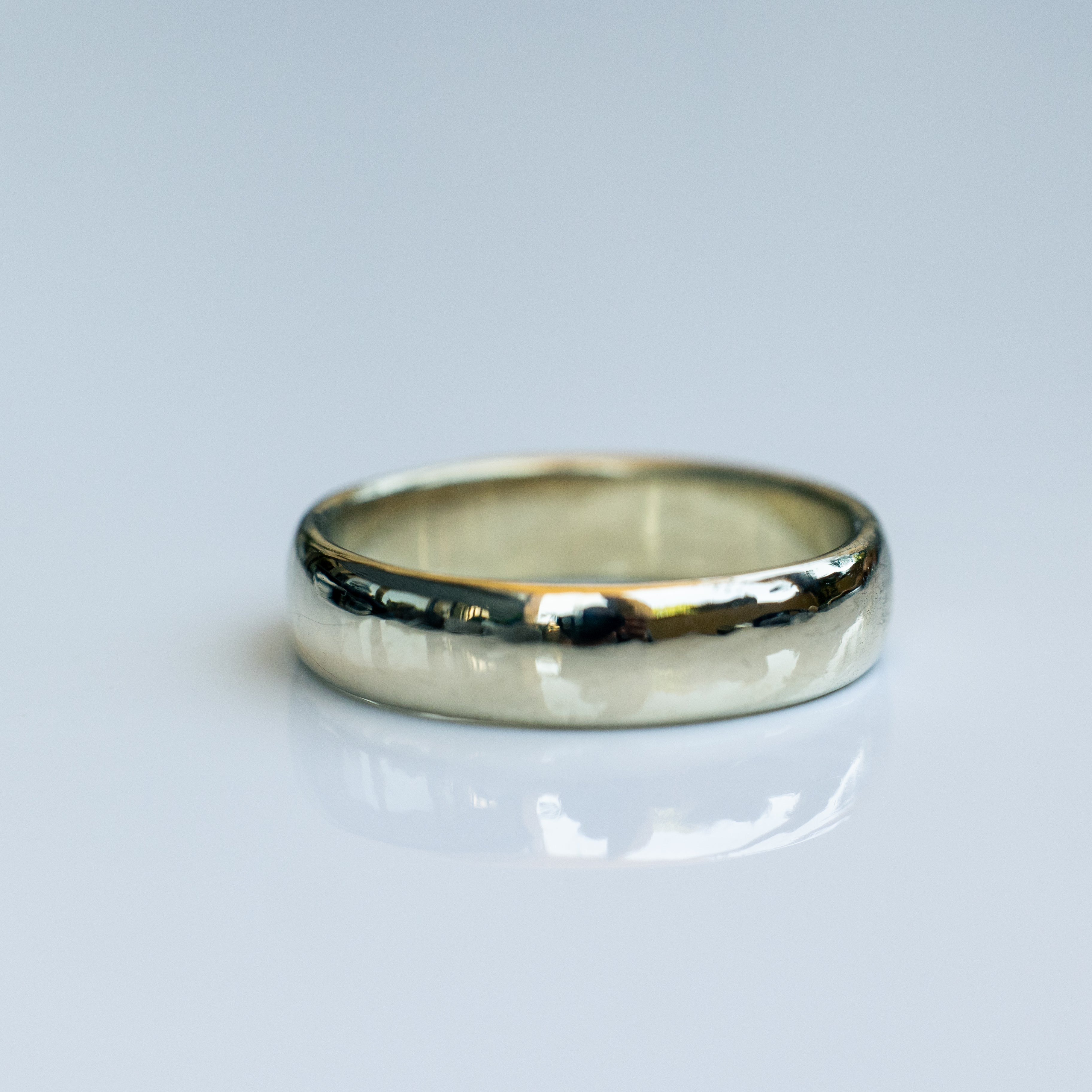 This is a classic chubby half-round gold ring with a massive and impressive presence. It is 5 mm wide, perfect for everyday wear, and can fit all genders.