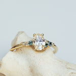 Asymmetric Oval Cluster Ring with White Diamonds and Sapphires